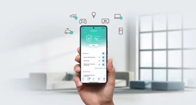 La technologie Smart AiMesh de nouvelle génération offre un backhaul maillé alimenté par l'IA avec MLO pour des performances optimisées et une faible latence. Vous pouvez profiter d'une expérience réseau plus stable et sécurisée sur tous les routeurs extensibles ASUS compatibles.