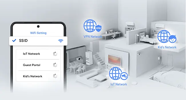 Configurez et gérez tous vos appareils IoT sous un seul SSID sécurisé pour assurer une sécurité renforcée avec une protection de niveau professionnel.