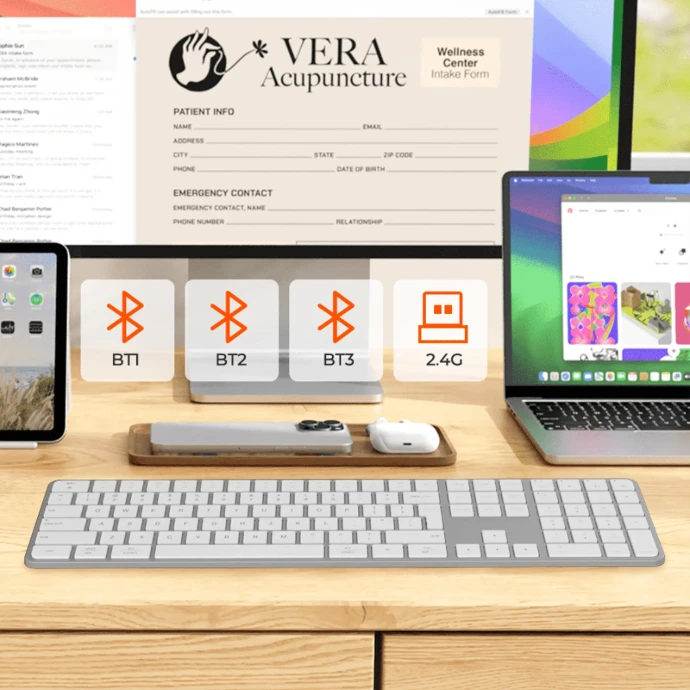Profitez d’une polyvalence totale avec une connectivité double mode avec un canal 2,4 GHz haut débit et trois canaux Bluetooth, vous permettant de vous connecter et de basculer sans interruption entre plusieurs appareils, améliorant ainsi votre flux de travail et bénéficiant d’un fonctionnement fluide à tout moment et en tout moment.