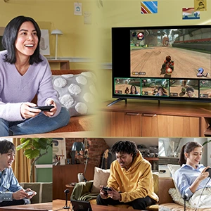Donnez une nouvelle dimension à vos jeux avec un écran plus grand 1080p, ou connectez la console à un téléviseur pour profiter d'une définition allant jusqu'à 4K. La prise en charge du HDR, du VRR et de fréquences d'images allant jusqu'à 120 images par seconde vous permet de profiter de couleurs éclatantes, d'une image nette et d'une expérience de jeu fluide.