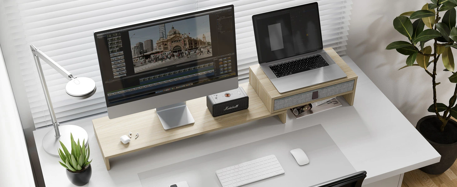 La largeur maximale est de 113cm, ce qui est suffisant pour supporter 2 moniteurs.