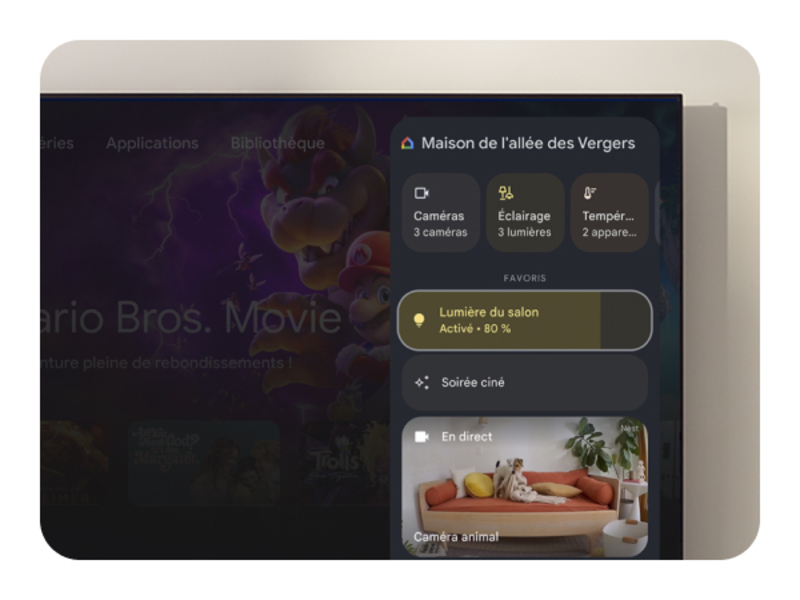 Contrôlez vos appareils connectés plus facilement à partir votre téléviseur grâce au nouvel écran de contrôle de la maison ou par commande vocale.