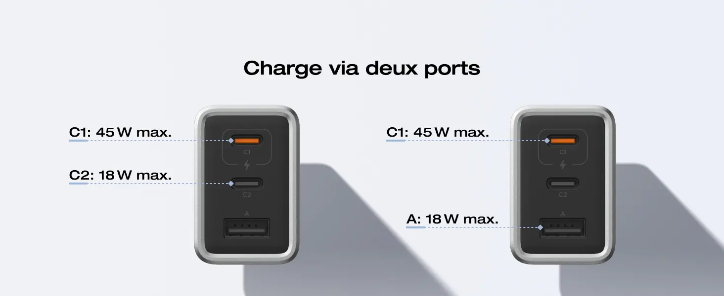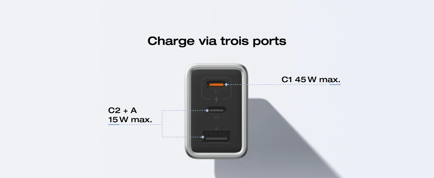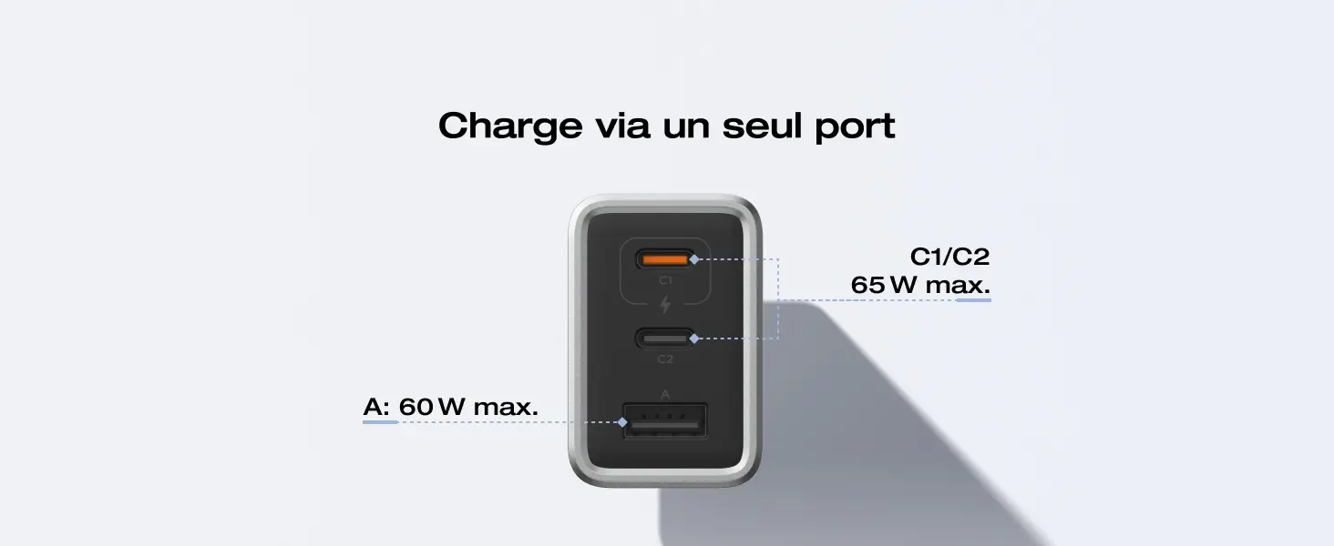 Le EcoFlow RAPID 65W GaN est un chargeur compact, puissant et intelligent, conçu pour répondre aux besoins de tous vos appareils modernes. Grâce à la technologie GaN (nitrure de gallium), il délivre une puissance maximale de 65 watts tout en restant 48 % plus petit et plus léger qu’un chargeur classique. Avec ses 3 ports (2× USB-C + 1× USB-A), il permet de recharger simultanément votre smartphone, tablette, ordinateur portable ou accessoires à vitesse optimale.