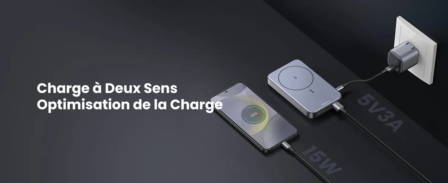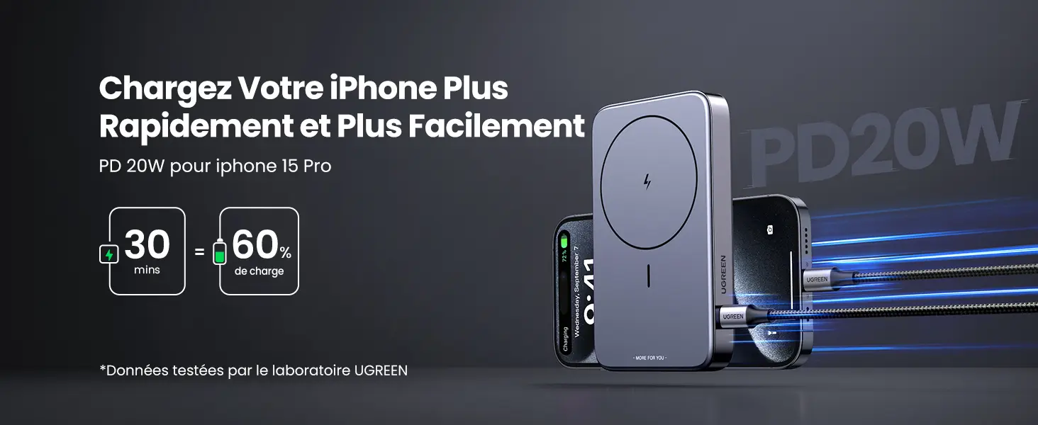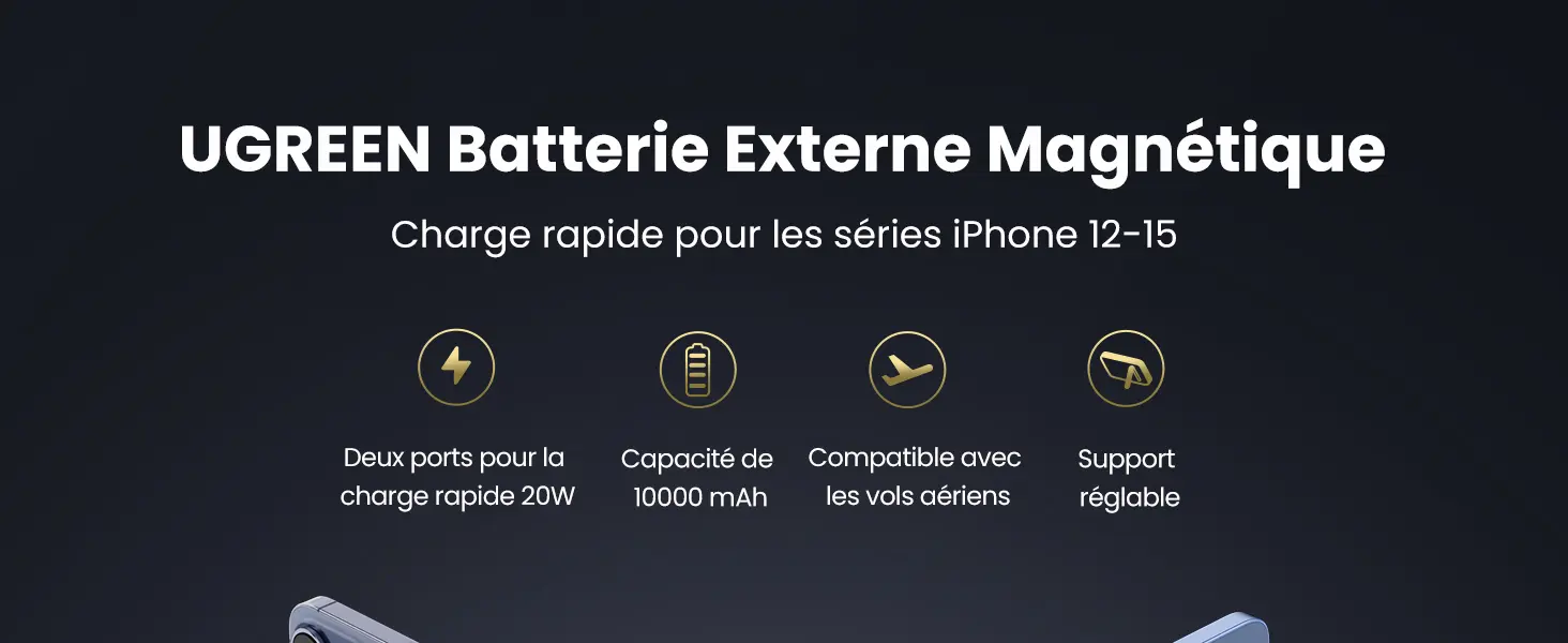 UGREEN Nexode Batterie Externe Magnétique sans Fil 10000mAh 20W PowerBank Induction USB C - USB A Charge Rapide