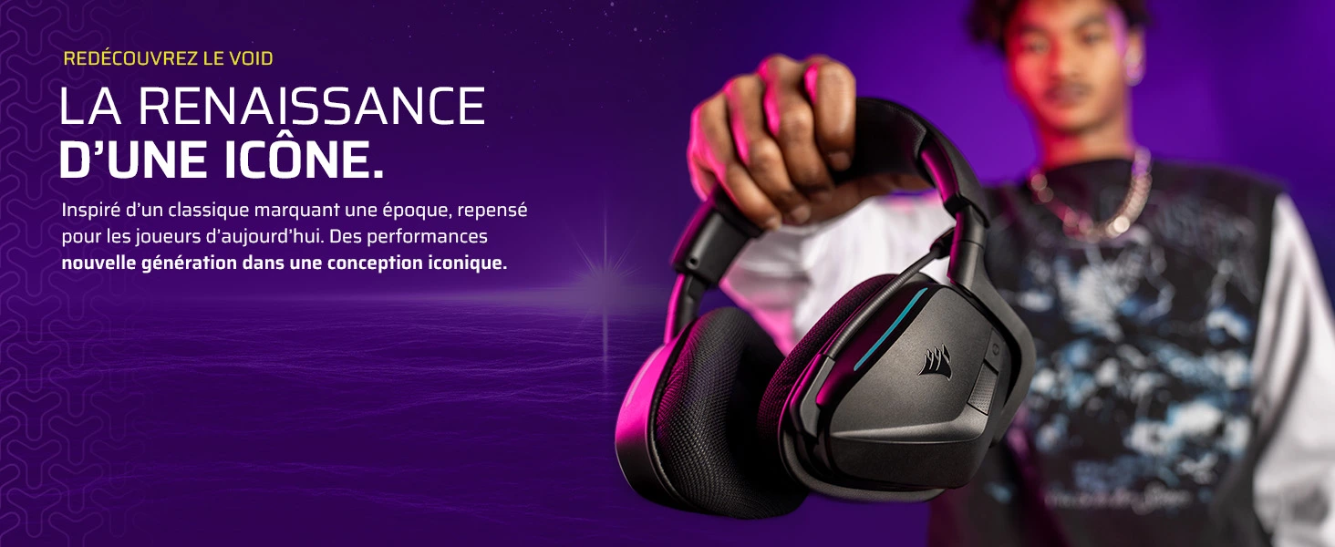 Forts d'une conception avancée et d'une fidélité exceptionnelle, les casques de jeu Corsair VOID vous permettent de commander votre environnement sonore de vos parties sans la moindre pause.