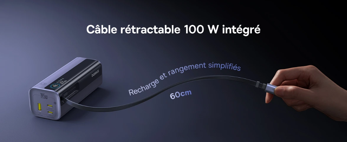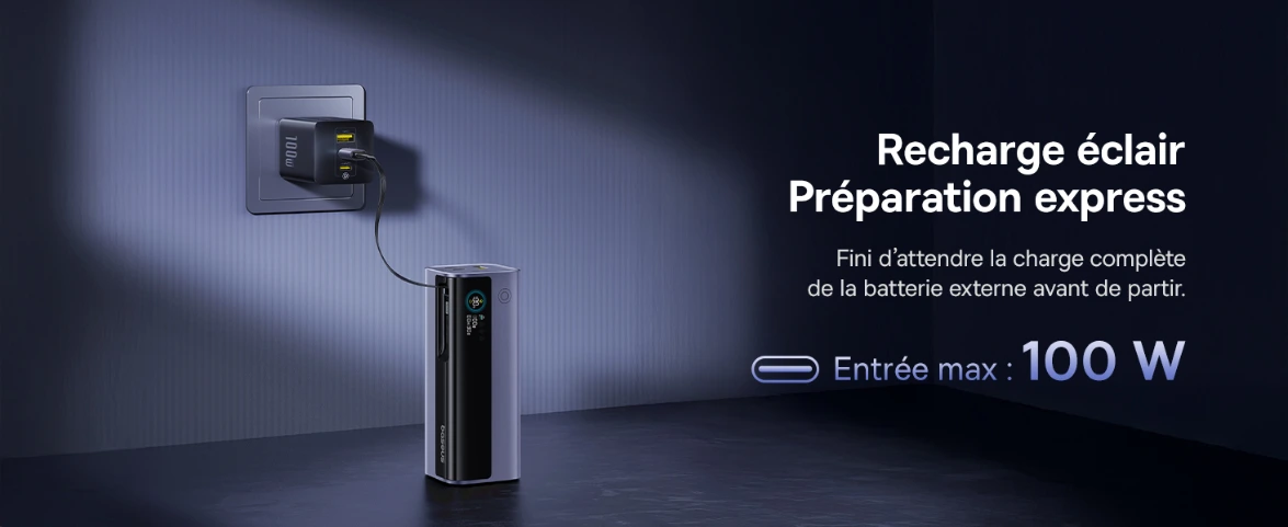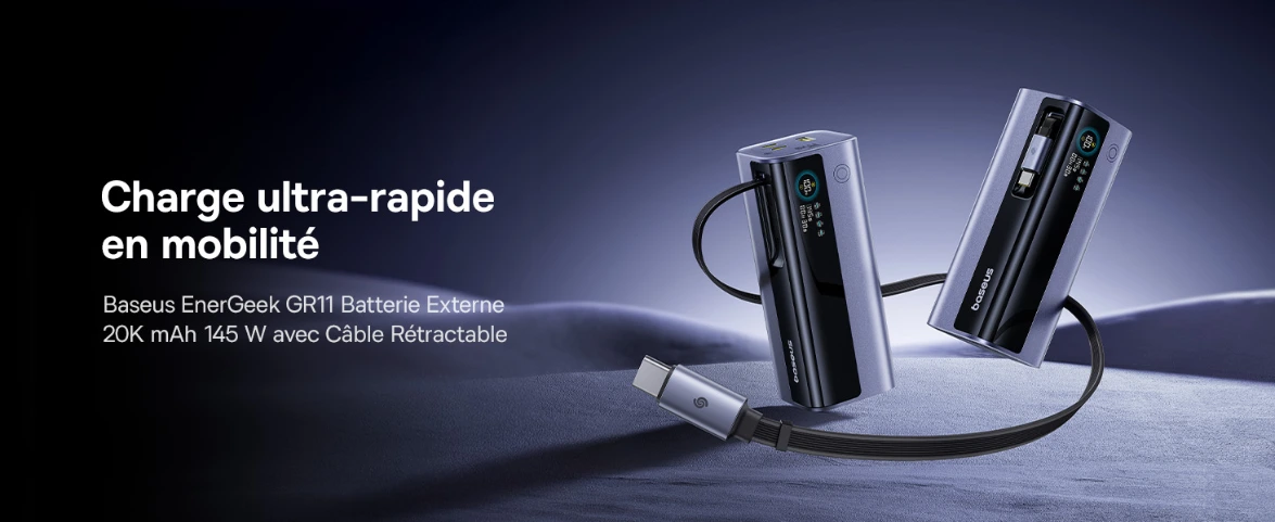 Baseus EnerGeekPowerBank 100W,10000 mAhPowerBank Charge Rapide — Rechargez vos appareils rapidement et en toute sécurité.