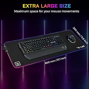 - Tapis de souris gaming - souple - base antidérapante - résistant aux éclaboussures - rétroéclairage à 7 couleurs - format étendu (800 x 300 x 3 mm)