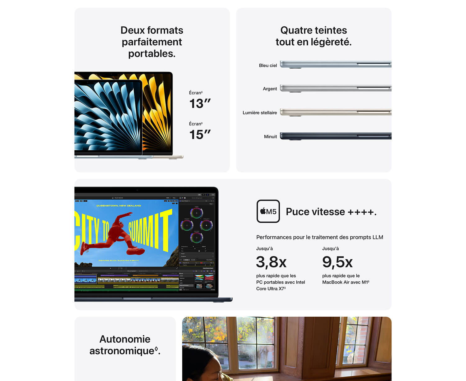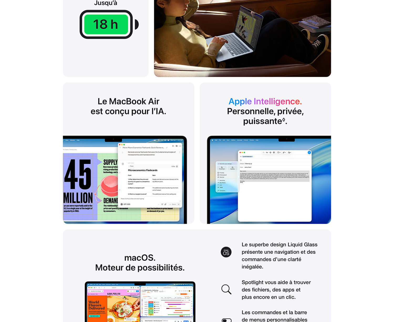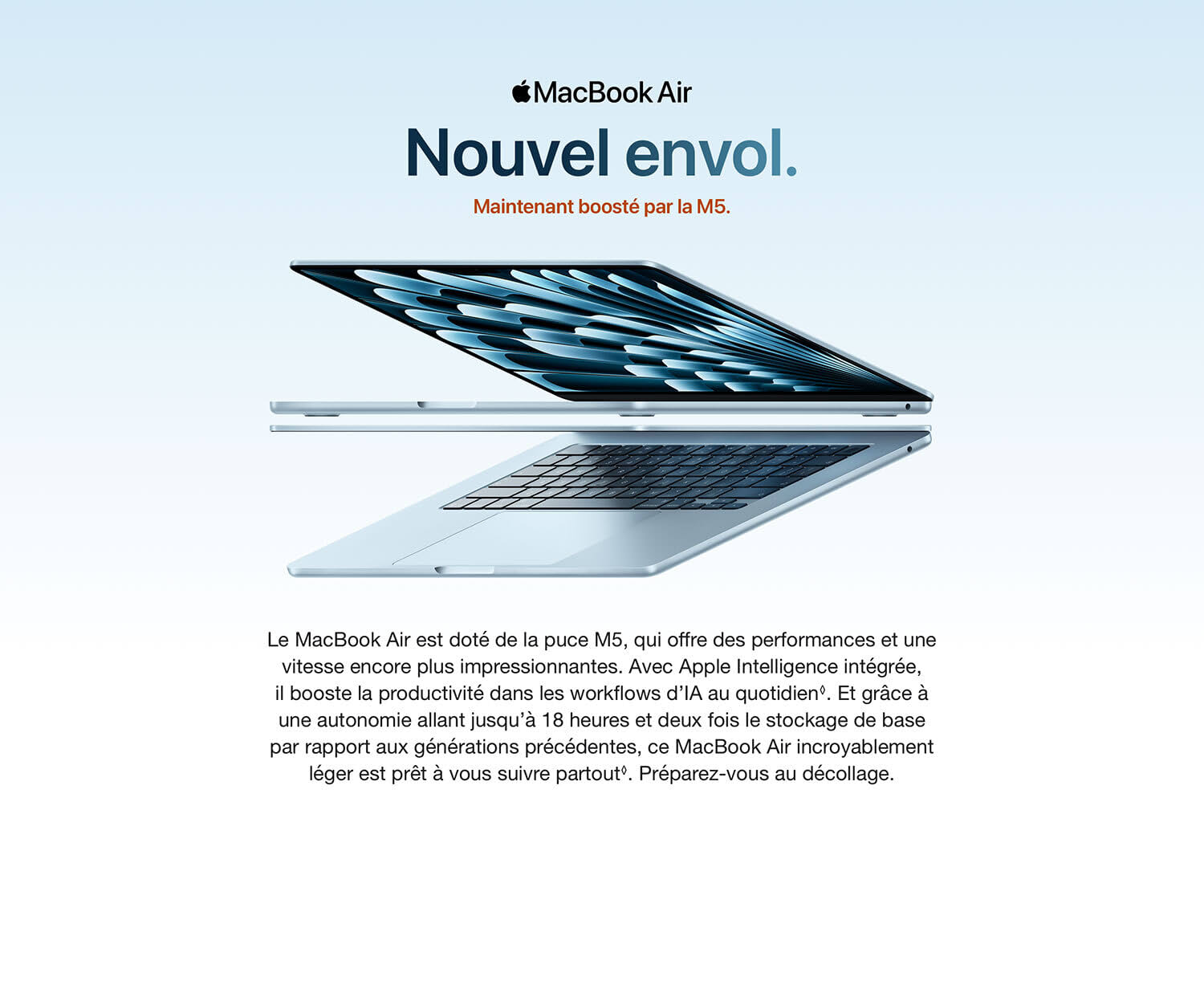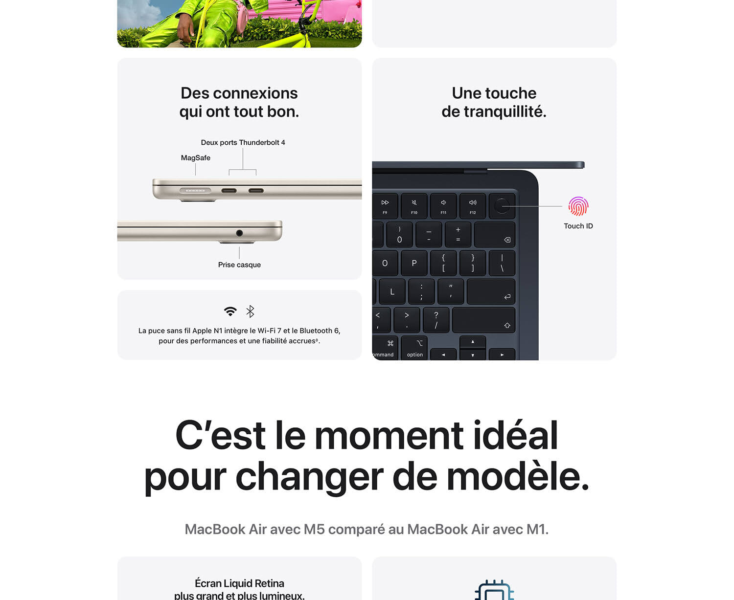 Apple MacBook Air 13 Pouces M5: 16 Go Ram et 512 Go SSD, Touch ID, Wi-FI 7 — Ordinateur portable performant disponible chez Les Bonnes Affaires.