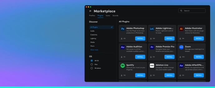 Marketplace, disponible sur l’application Logi Options+ (2), vous donne accès à des centaines de plug-ins, modèles de profils, de packs d’icônes, et bien plus encore.