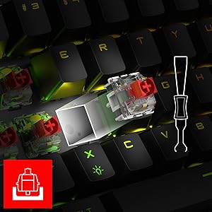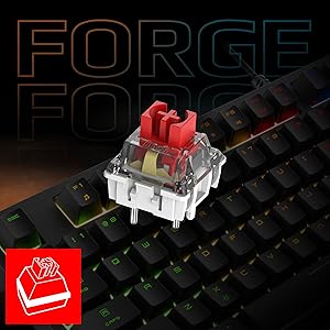Équipée de switches Red mécaniques durables, la série FORGE offre une course de touches fluide et linéaire ainsi qu'un actionnement précis. Les capuchons de haute qualité garantissent un confort durable et des performances fiables, même en cas d'utilisation prolongée.