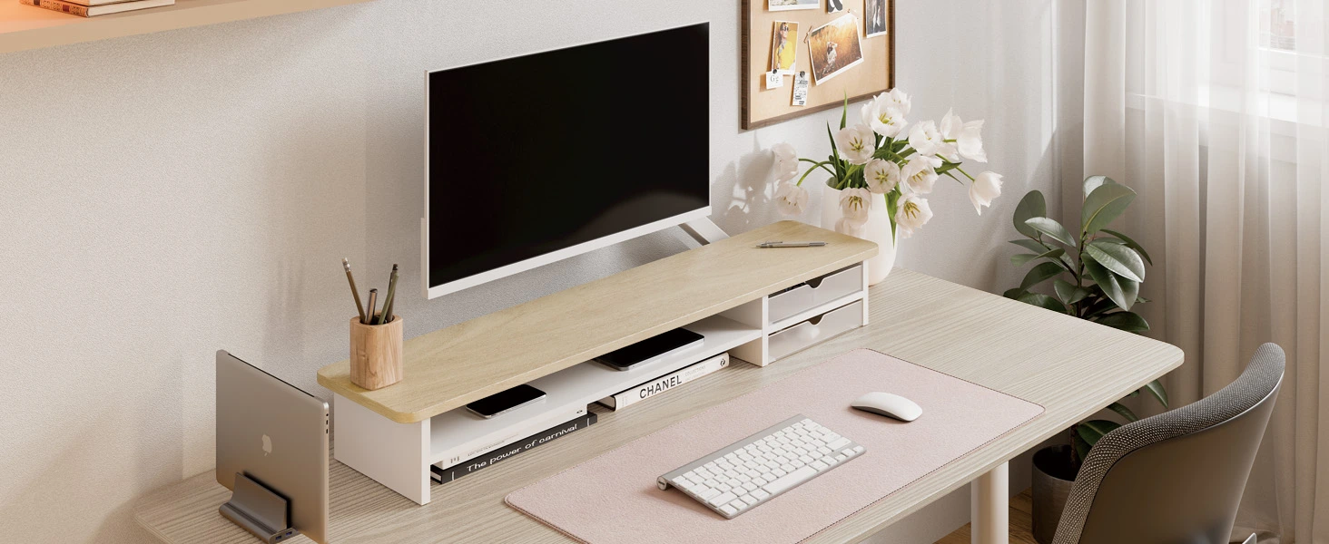 Notre support pour ordinateur est plus long que les autres et très pratique. Il peut être un support pour moniteur/ordinateur, un support pour imprimante, un support pour ordinateur portable. Il sera un bon assistant dans votre vie et votre bureau.