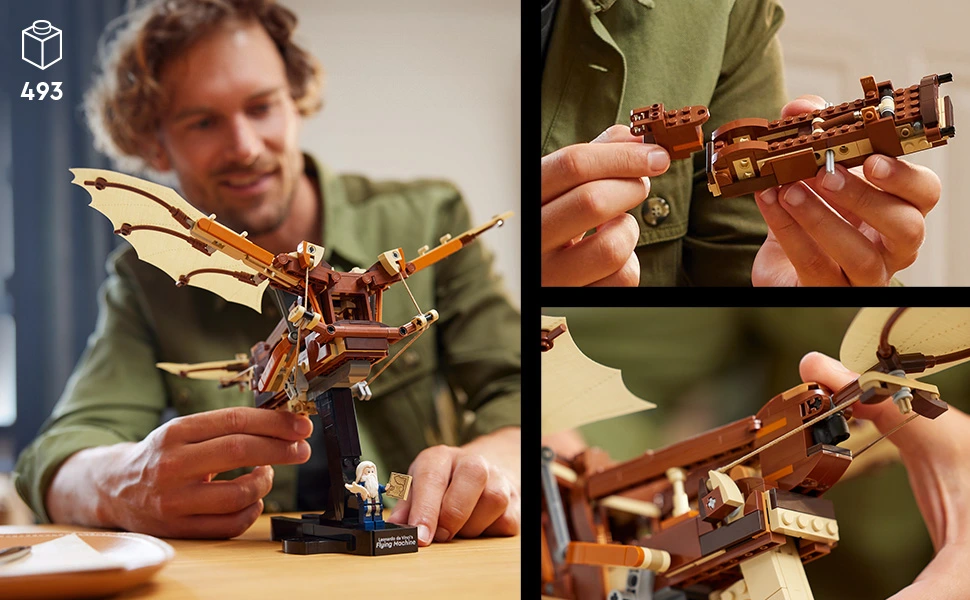 Créez un modèle détaillé de l’ornithoptère visionnaire de l’artiste, qui s’accompagne d’une minifigurine de Léonard de Vinci.