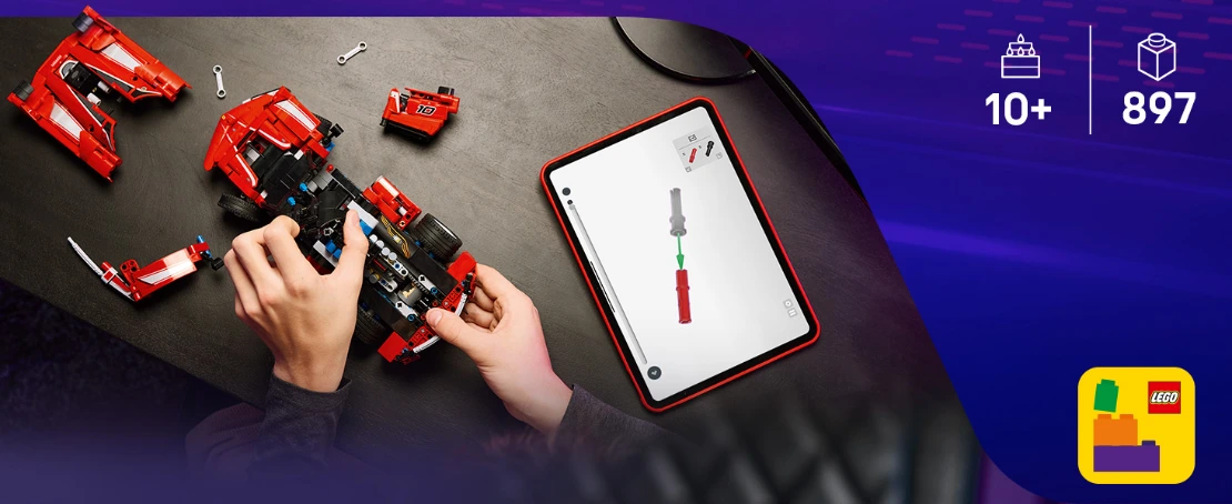 Amusez-vous à construire tous les détails de cette voiture Ferrari, comme le capot qui s’ouvre.