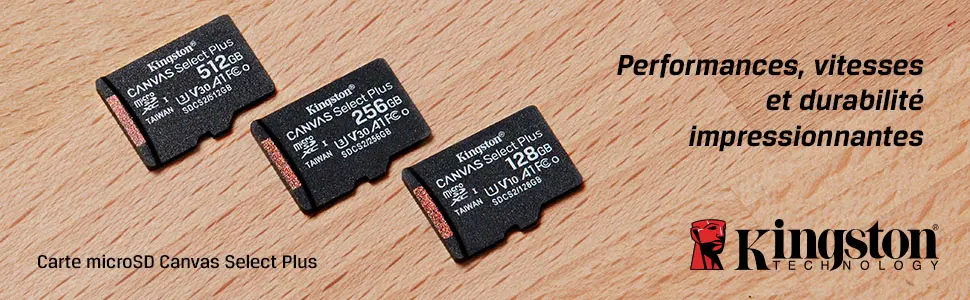 La carte microSD Canvas Select Plus de Kingston est compatible avec les dispositifs Android et affiche des performances A1. Elle offre de meilleurs débits et capacités. Cela se traduit par un chargement plus rapide des apps et des photos et vidéos dans différentes capacités jusqu'à 512Go¹. Affichant sa puissance en termes de performances, de débit et de solidité, la carte Canvas Select Plus microSD a été conçue pour la fiabilité au moment de prendre et de développer des photos haute résolution ou d'enregistrer et d'éditer des vidéos Full HD. Les cartes Canvas de Kingston sont soumises à des essais de durabilité dans les environnements et les conditions les plus difficiles, si bien que vous pouvez les emmener partout en étant sûr que vos photos, vos vidéos et vos autres fichiers seront en sécurité. Proposée avec une garantie à vie.
