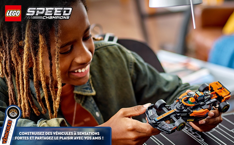 Enfants et fans de F1 peuvent revivre les frissons de la course avec La voiture de course de Formule 1 McLaren 2023 LEGO Speed Champions.