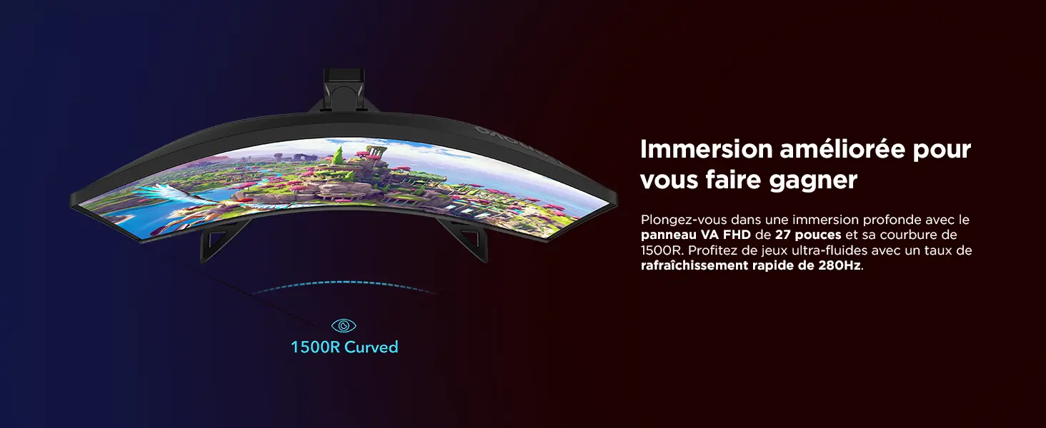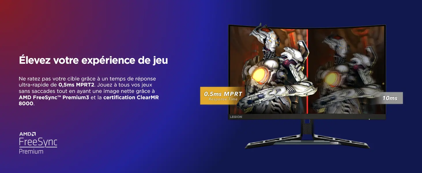 Avec son format 27 pouces, le moniteur Lenovo R27fc-30 offre à chaque utilisateur une grande surface visuelle pour répondre à toutes ses envies gaming ! Porté par une dalle VA incurvée, ce modèle vous propose alors des couleurs riches, des angles de vision larges et une belle luminosité. Il se montre également immersif à chaque instant en plus d'adopter une résolution Full HD (1920 x 1080). Pour vous mener vers la victoire, ce modèle est compatible avec technologie AMD FreeSync Premium pour une meilleure fluidité. Il dispose aussi d'un temps de réponse pouvant atteindre 0.5 ms (MPRT) et une fréquence de rafraîchissement maximale de 240 Hz (280 par overclock).