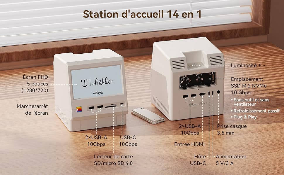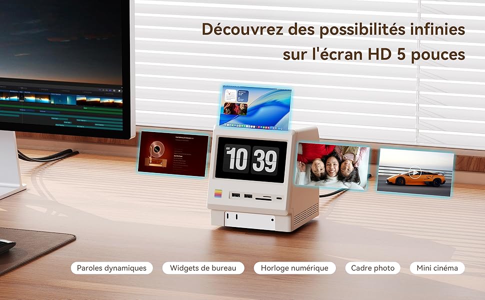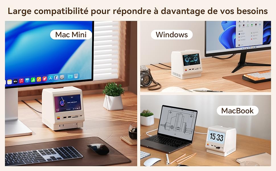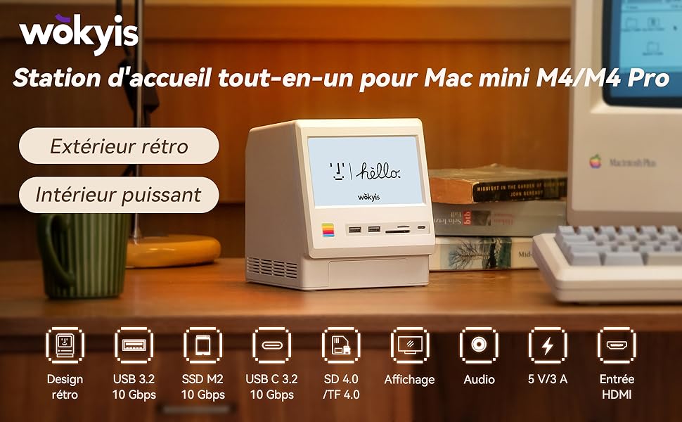 M5 Station d'accueil rétro pour Mac Mini M4, écran HD 5", boîtier SSD M.2 NVMe 10 Gbps — Disponible chez Les Bonnes Affaires à Abidjan.
