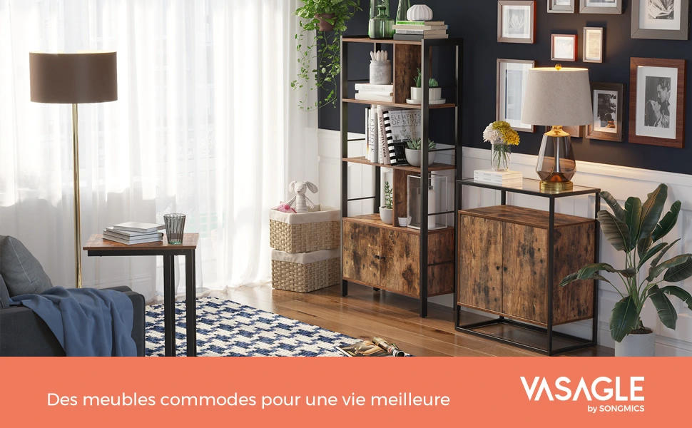 1. VASAGLE Étagère, Bibliothèque à 4 Niveaux, Meuble de Rangement, Placad, avec Portes, Grand, Cadre en Acier, pour Salon, Bureau, Chambre, Style Industriel, Marron Rustique et Noir