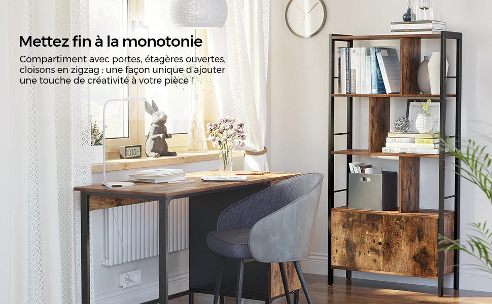 Avec ses panneaux brun rustique et son cadre noir à la finition mate, il est lui-même une décoration chic originale.